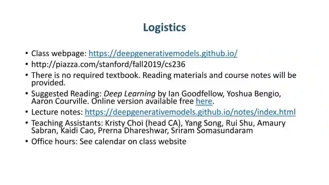【导读】本文为大家带来了一份斯坦福大学的最新课程CS236——深度生成模型,目前更新到第一课,感兴趣的同学可以多多关注,跟随学习。