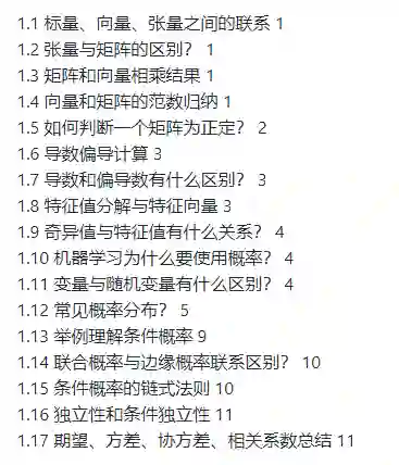 这一章主要介绍了机器学习、深度学习必备的数学基础,包含线性代数、概率论在内的总共 17 道问题和解答。