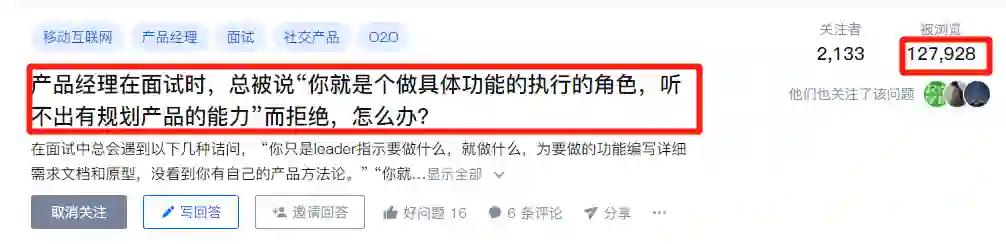 最近在知乎上刷到一个10W+产品经理都在浏览的的帖子:
