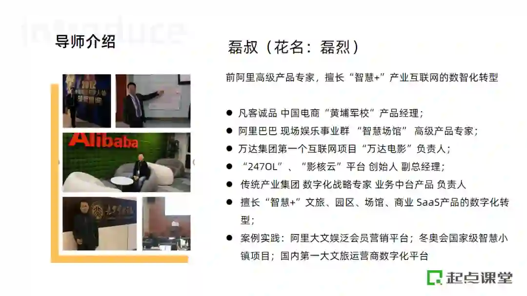 这是由起点课堂(原起点学院)出品的B端产品公开课,专为正在做B端产品同学,或者对B端产品感兴趣想要了解相关工作内容的同学打造,课程将由前阿里高级产品专家@磊叔直播授课。