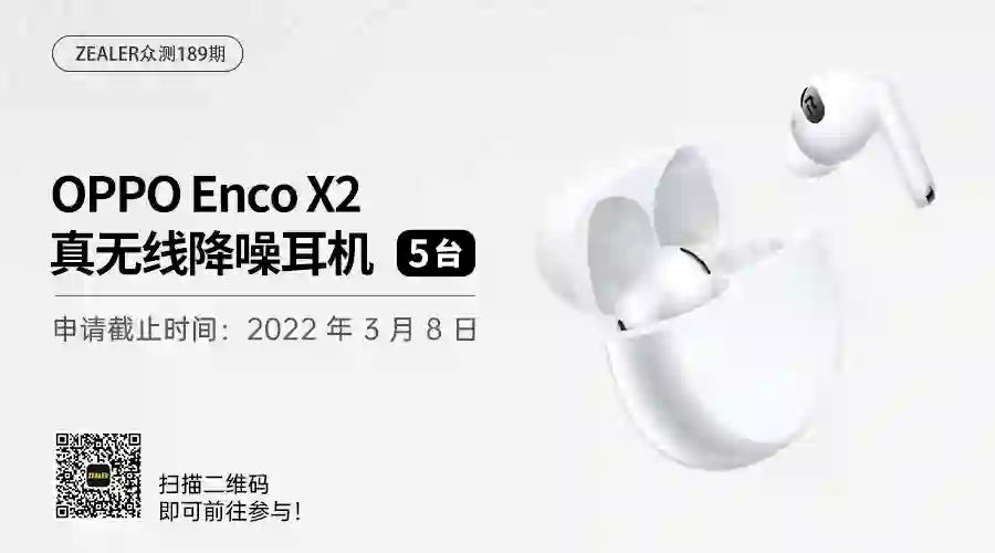 久石让调音,OPPO Enco X2 听感会提升吗?OPPO Enco X2 真无线耳机抢先上线 ZEALER 众测!久石让调音联合丹拿设计、超宽频主动降噪、45db 降噪深度...在发布会揭开神秘面纱之前,还会有多少惊喜?来众测一探究竟吧!扫上方二维码或戳左下角「阅读原文」即可前往参与。