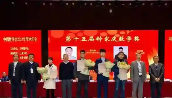 浙江大学、希伯来大学博士曹培根,武汉大学博士陈洪葛、青海师范大学博士崔素平和比利时法语鲁汶大学博士高斌荣获第十五届中国数学会钟家庆数学奖。