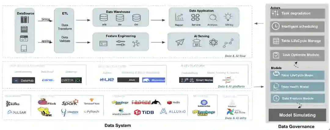 4、Data Governace System。整理清楚数据治理对象的各个模块及模块之间的影响关系后,下一部分需要做的工作是设计数据治理服务自身的工程化工作。数据治理的工程化设计和实现,核心目标是将治理工作变得日常化 ->自动化 -> 智能化。
