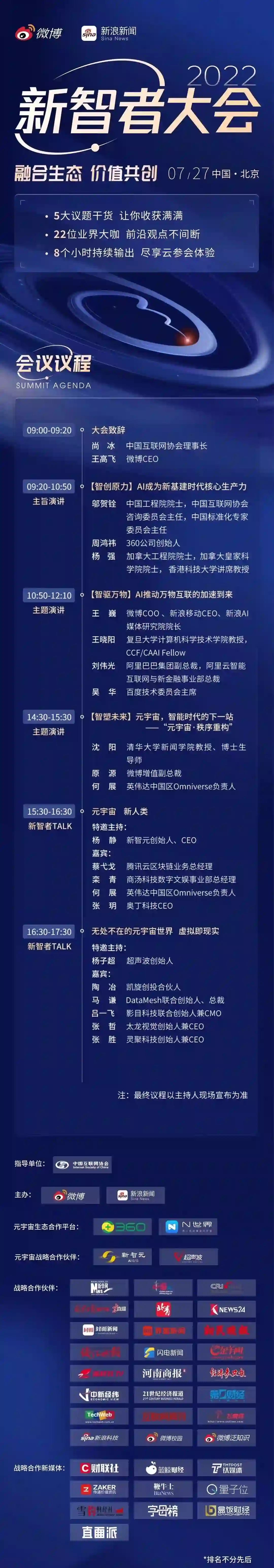 7月27日,由中国互联网协会指导、微博和新浪新闻主办的「2022新智者大会」召开。