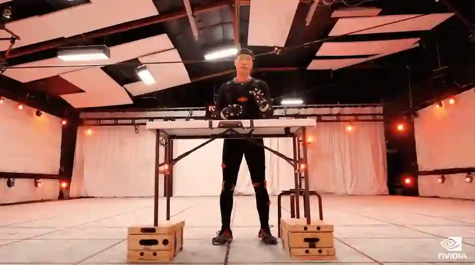 英伟达总共录制了8小时的视频,期间这位演员需要一边阅读以前的Keynote,一边模仿老黄的动作和表情。