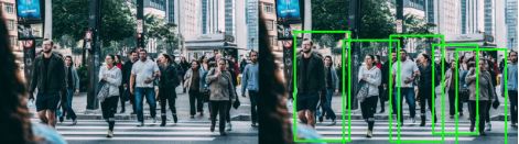 def localDetect(image_path):result = []image = cv2.imread(image_path)if len(image) <= 0:print("[ERROR] could not read your local image")return resultprint("[INFO] Detecting people")result = detector(image)# shows the resultfor (xA, yA, xB, yB) in result:cv2.rectangle(image, (xA, yA), (xB, yB), (0, 255, 0), 2)cv2.imshow("result", image)cv2.waitKey(0)cv2.destroyAllWindows()return (result, image)