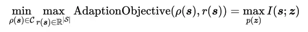 为 的优化目标,即策略在下游任务上的 adaption 过程,其中第一项以策略在下游任务 为优化目标,第二项为 与初始化策略分布 分布之间的 KL 散度,KL 散度越小,两者之间差异性越小,策略能够越容易的 general 到下游任务(作者称此项为 information cost)。可以看到 与 的唯一差别是: 为 下的最优 state 分布,仅仅以策略最优性作为优化目标,而 的优化过程需要同时考虑策略最优性以及 adaption 过程的 information cost。