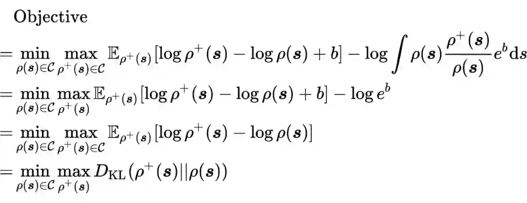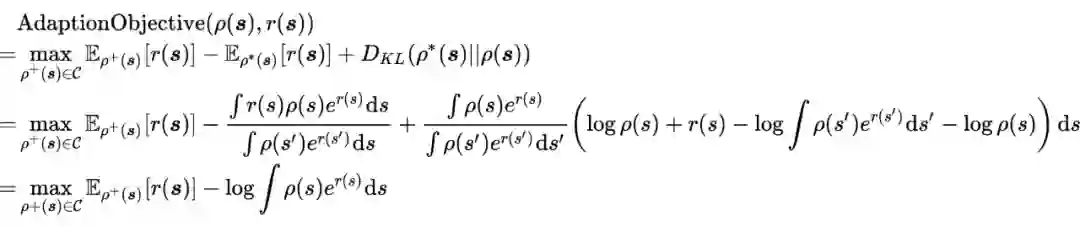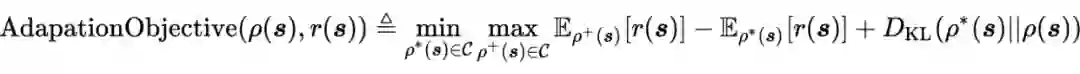 公式中 代表初始化数据分布(即 pre-train 后得到的分布,初始化是相对于下游任务来说), 为在下游任务上(对于奖励函数 )进行 adaption(finetune)得到的 state 分布; 下游任务 上的最优 state 分布。
