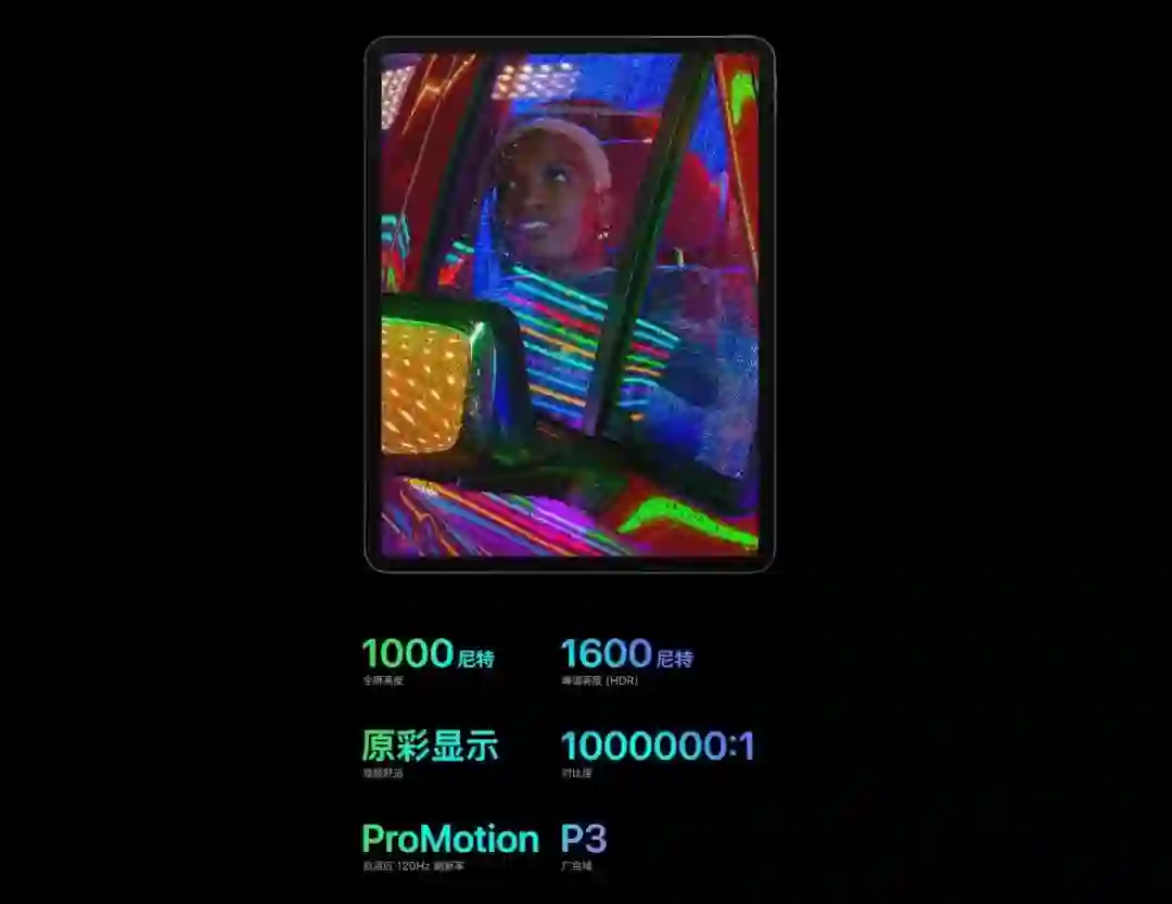 今年的 iPad Pro 12.9 英寸率先采用了 mini-LED 显示屏,带来了 1000 尼特全屏亮度、1600 尼特 HDR 峰值亮度、100 万:1 的对比度,生动显示堪比 OLED 屏。不过 mini-LED 在 iPad 上由 12.9 英寸 iPad Pro 独占,价格门槛相当的高——起步价 8499 元。