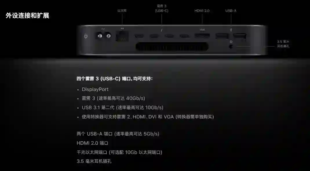 当苹果全线换上自研芯片之后,原先的 Mac mini 高配版完全沦为了“低配版”,它是所属系列里唯一一款还在用英特尔处理器的。如果不是工作环境需求,这个 8299 元起的版本,在 M1 版推出后就已经不值得买了。