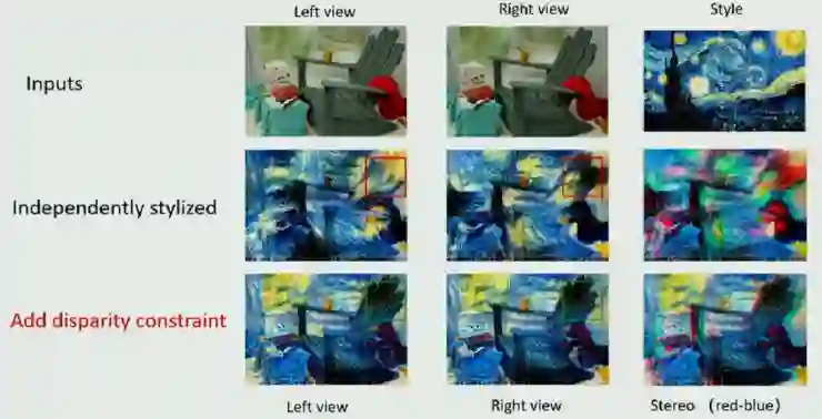 解决这个问题的关键,即将左右眼的约束加入到风格转换过程当中,这个约束被称为 disparity constraint。