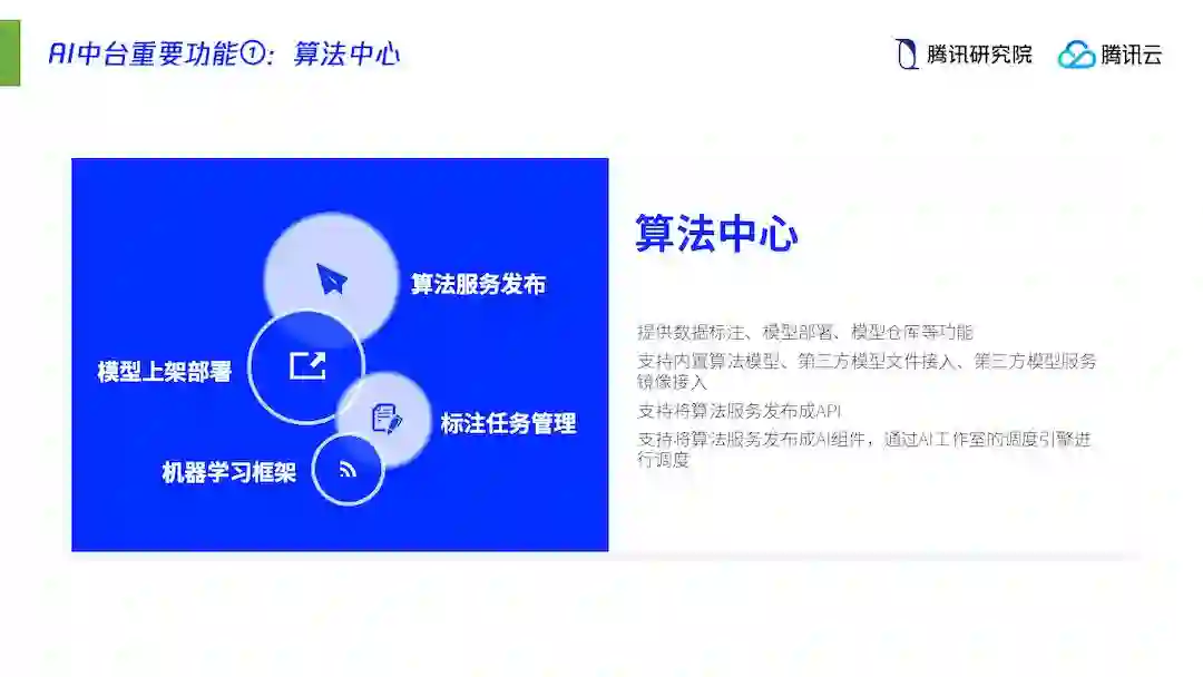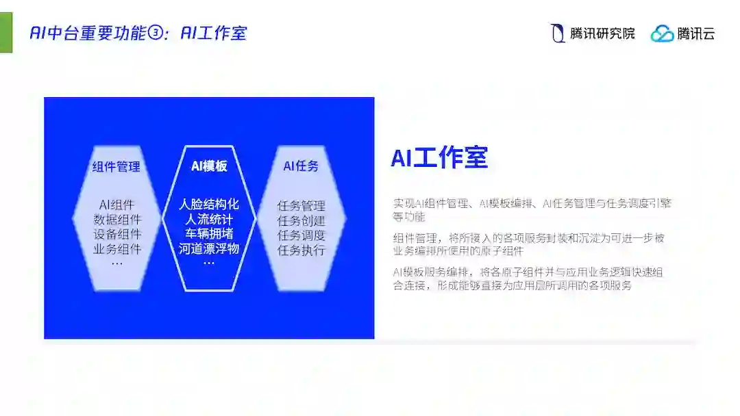 (2)模组化中台。在共享技术、数据、接口和标准的前提下,既有AI中台,也有应用中台、数据中台,共同为社会输出敏捷服务,激发各色应用或服务百花齐放;