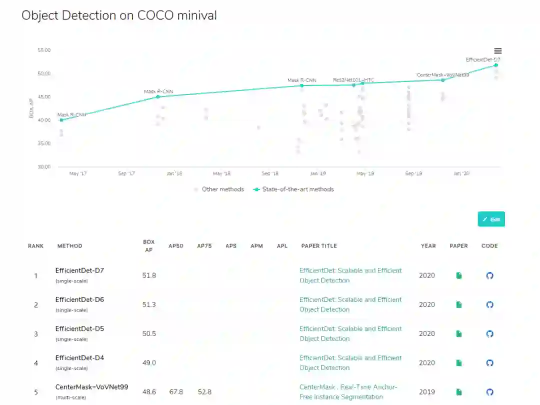 接下来我们来看一下 coco 数据集上目标检测算法的排名,多个屠榜的目标检测网络基于 EfficientDet 构建。一图以言之: