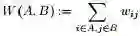邻接矩阵W,A子图与B子图之间所有边的权值之和定义如下: