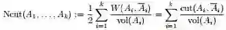 为了让每个类都有合理的大小,目标函数尽量让A1,A2...Ak 足够大。改进后的目标函数为: