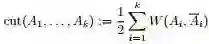 设为图的几个子集(它们没有交集) ,为了让分割的Cut 值最小,谱聚类便是要最小化下述目标函数:
