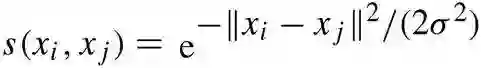 相似度矩阵的定义。相似度矩阵由权值矩阵得到,实践中一般用高斯核函数(也称径向基函数核)计算相似度,距离越大,代表其相似度越小。