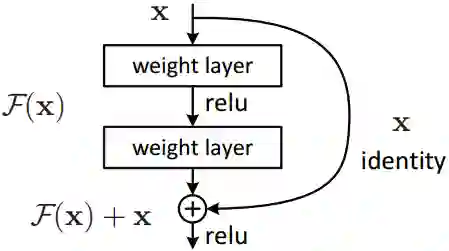 上一层的特征图x直接与卷积后的F(x)对齐加和,变为F(x)+x (特征图数量不够可用0特征补齐,特征图大小不一可用带步长卷积做下采样)。这样在每层特征图中添加上一层的特征信息,可使网络更深,加快反馈与收敛。