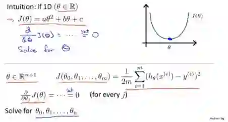 1、 假设代价函数是标量θ的二次函数,则只需要对其求导,令求导后的值为零,反解出θ即为最优参数值。(针对的是线性回归)