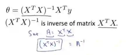 对于线性回归的最优参数,可以利用下图所示的式子进行求解(数学上已经得到证明):
