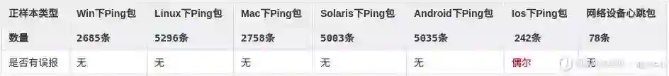 正常Ping数据包,Ping命令产生的数据包,平台包括linux/win/mac/solaris/android/ios,payload内容如下:abcdefg12345等。