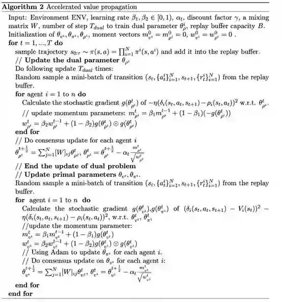 该论文使用了softmax时间一致性和分散优化方法,获得了原理和数据有效的迭代算法。在每次迭代的第一步中,代理计算其本地策略和值渐变,然后仅更新策略参数。并且代理根据其值函数将消息传播给其邻居,然后更新其自己的值函数。同时使用非线性函数逼近证明了非渐近收敛速度的过程。
