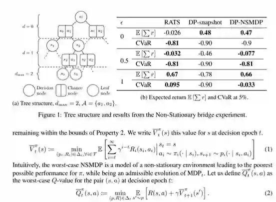 这项工作解决了非平稳随机环境中强大的零射击规划问题。作者研究马尔可夫决策过程(MDP)随时间演变并在此设置中考虑基于模型的强化学习算法。提出两个假设:1)环境以有限的进化速率不断演变; 2)当前模型在每个决策时期都是已知的,但不是它的演化。我们的贡献可以分为四点。1)定义了一类特定的MDP,称之为非固定MDP(NSMDP)。作者通过对过渡和奖励函数w.r.t做出Lipschitz-Continuity的假设来介绍常规进化的概念。时间; 2)考虑使用当前环境模型但未意识到其未来发展的计划代理。这导致我们考虑一种最坏情况的方法,其中环境被视为对抗剂; 3)遵循这种方法,最后作者提出风险反向树搜索(RATS)算法,一种类似于Minimax搜索的基于模型的零射击方法; 4)通过经验证明了RATS带来的好处,并将其性能与基于模型的参考算法进行了比较。