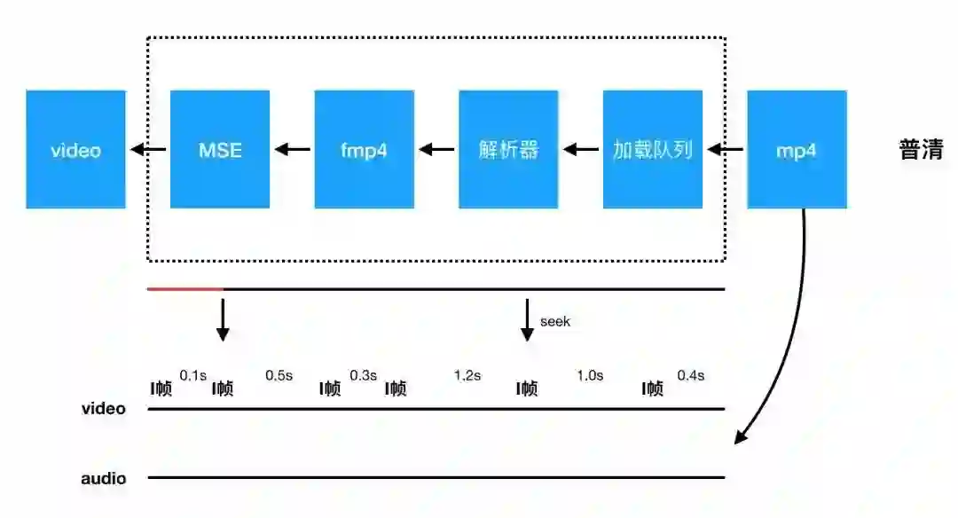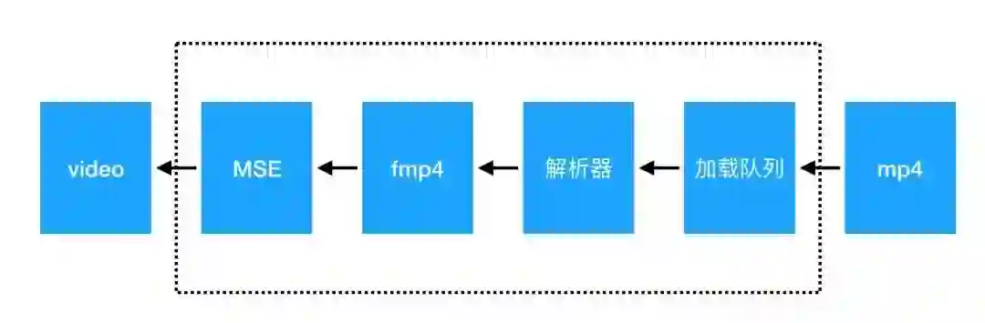 首先,我们改变对 mp4 视频的播放流程,不再直接使用 video 的 src 来播放,因为我们没有任何可以操作的空间。video不仅支持 src 属性还支持 Blob 对象,我们就是利用后者。播放的流程如下: