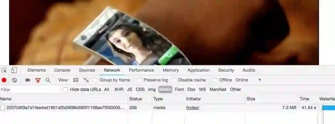 这两张图不难看出,在默认情况下 mp4 使用一次 http 请求所有的视频数据,Youtube 则分次请求。当然这个描述很不专业,但确实形象。造成这种差异的是 video 不支持流式的视频数据,Youtube 采用的是流式的视频容器 webm,而 mp4 是非流式的。那如何解释清楚流式的视频数据呢,从专业的角度三言两语很难说清楚,但用大白话翻译过来就是流式的视频数据支持分段独立播放,非流式的不可以。换句话说一个10M的视频文件,流式的视频可以把0~1M的数据请求回来单独播放,但是非流式的不可以。