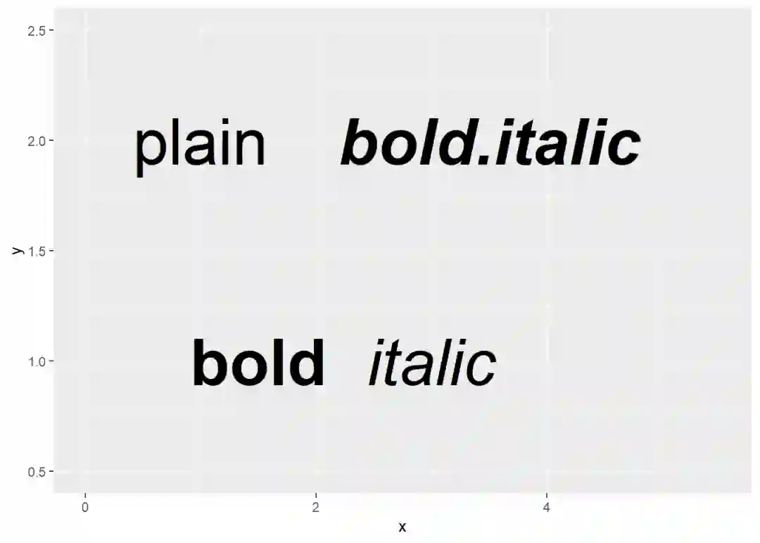 df <- data.frame(x = c(1, 1.5, 3, 3.5), y = c(2, 1, 1, 2), fontface = c("plain",