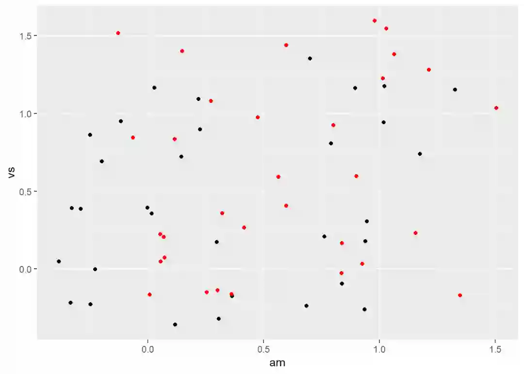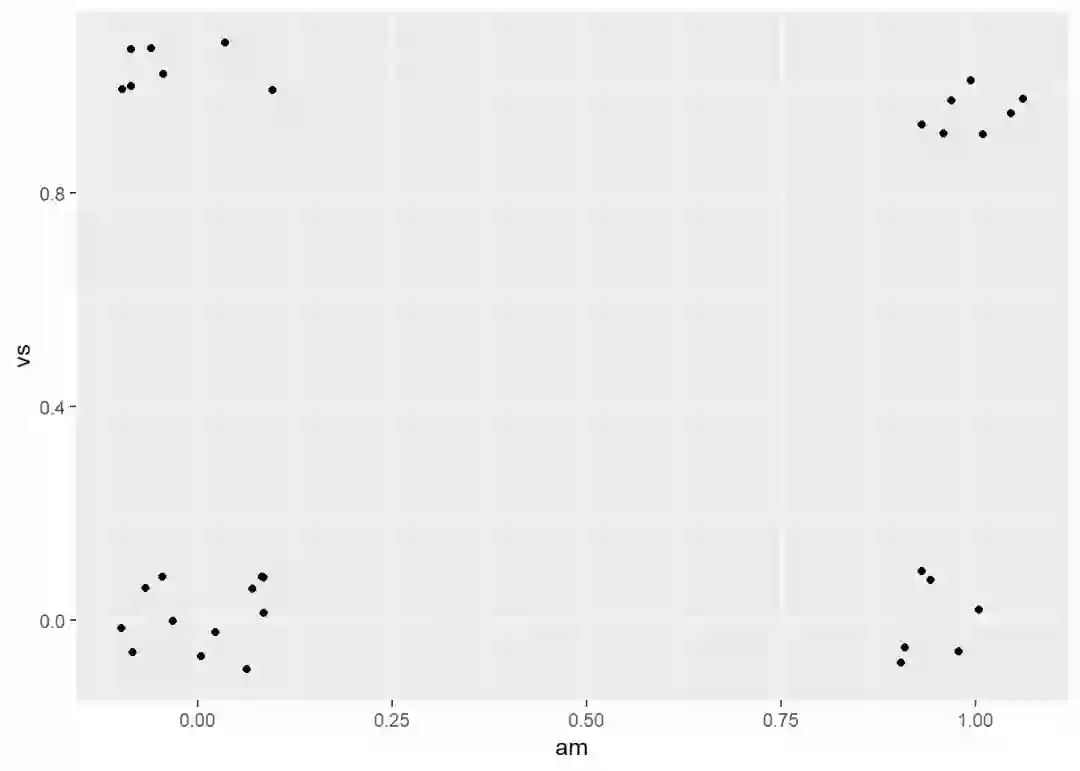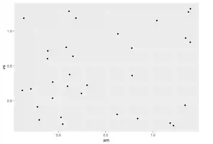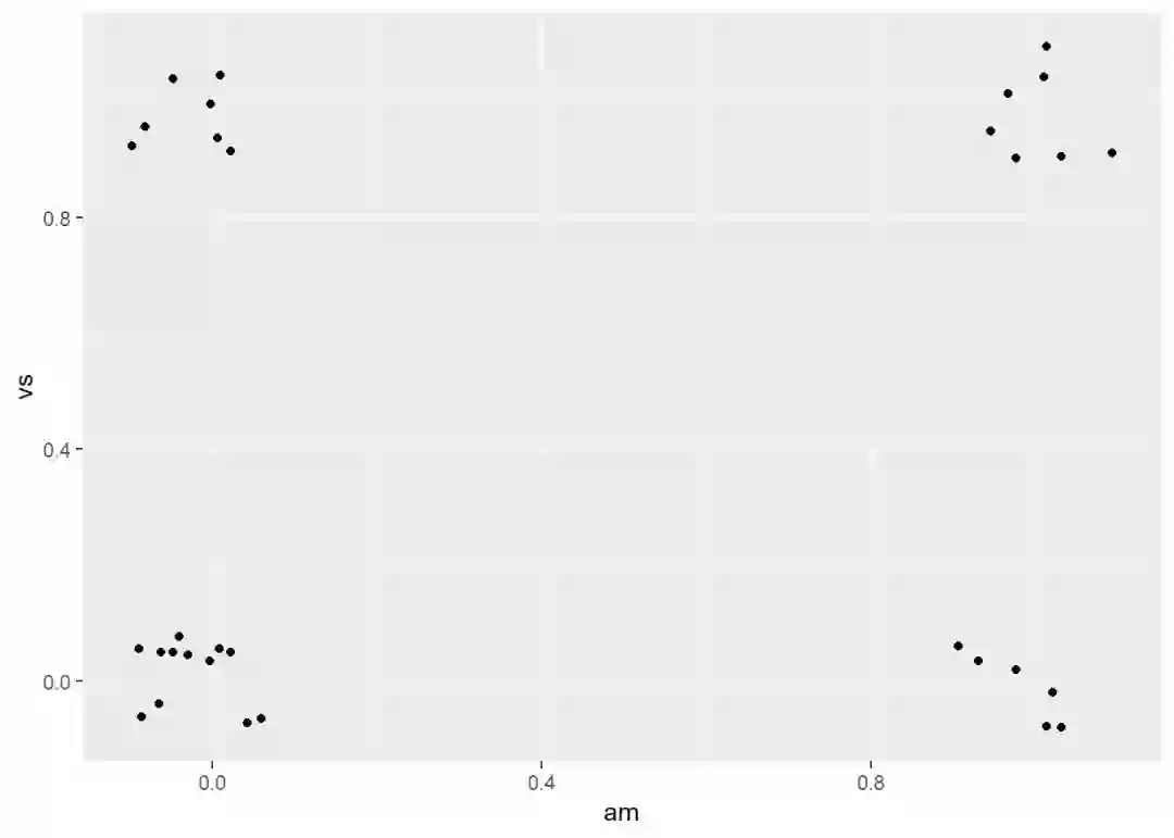 geom_point(aes(am + 0.2, vs + 0.2), position = "jitter", color = "red" ) # 可以在映射里面进行简单的运算