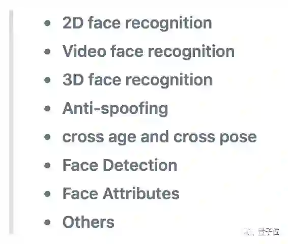 2D人脸识别、视频人脸识别、3D人脸识别、反欺骗、人脸检测、人脸属性等等。