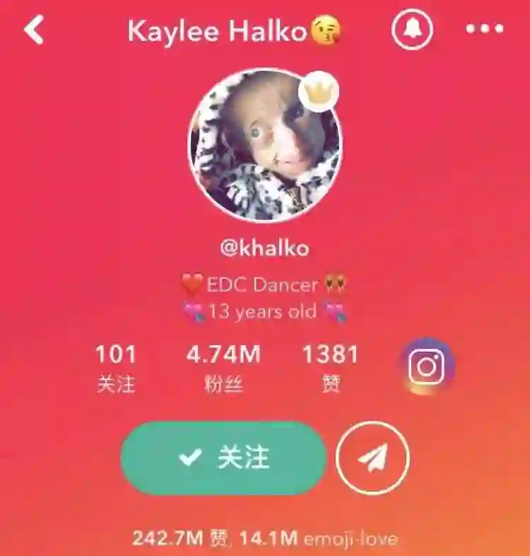 「Everyone is beautiful(每个人都是美丽的)」,这是musical.ly社区运营的核心准则之一。Kaylee Halko喜欢爵士、hip hop和音乐剧,她每天做着校园巴士上学,坚持报名舞蹈比赛,在musical.ly上她和一个金发的小姑娘比赛跑步,对方嗖地一下跳过围栏,她却被一个大石头绊住了脚步。