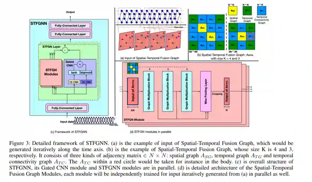 由于不同道路间交通流时空分布格局具有复杂的空间相关性和动态趋势,交通流时空数据预测是一项具有挑战性的任务。现有框架通常利用给定的空间邻接图和复杂的机制为空间和时间相关性建模。然而,具有不完全邻接连接的给定空间图结构的有限表示可能会限制模型的有效时空依赖学习。此外,现有的方法在解决复杂的时空数据时也束手无策:它们通常利用独立的模块来实现时空关联,或者只使用独立的组件捕获局部或全局的异构依赖关系。为了克服这些局限性,本文提出了一种新的时空融合图神经网络(STFGNN)用于交通流预测。首先,提出一种数据驱动的“时序图”生成方法,以弥补空间图可能无法反映的几种现有相关性。SFTGNN通过一种新的时空图融合操作,对不同的时间段进行并行处理,可以有效地学习隐藏的时空依赖关系。同时,该融合图模块与一种新的门控卷积模块集成到一个统一的层中,SFTGNN可以通过层堆叠学习更多的时空依赖关系来处理长序列。在几个公共交通数据集上的实验结果表明,我们的方法达到了最先进的性能比其他基准一致。