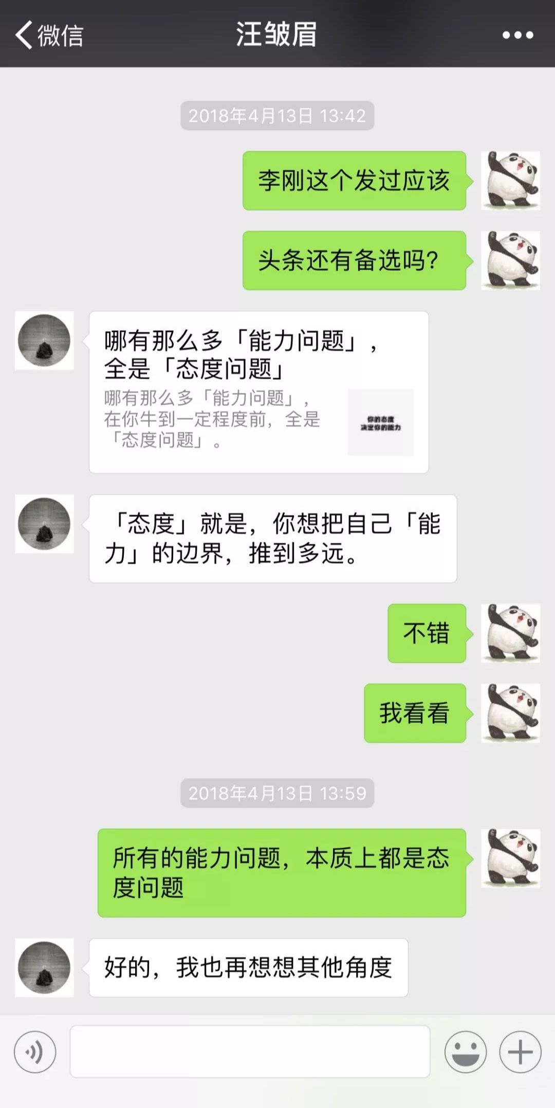 2018年4月13日,发表《一位麦肯锡7年老员工忠告:所谓的能力问题,全都是态度问题》,阅读量23万,转发人数22582人。