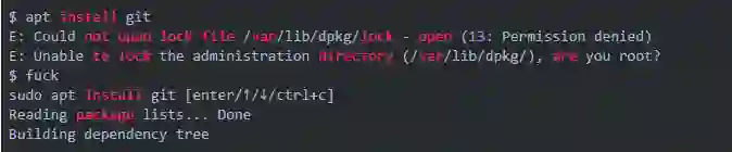 输入命令时最让人头疼的就是输入了很长的命令之后发现开头打错了一个字母,或者忘了写sudo。TheFuck就是用来解决这个问题的。