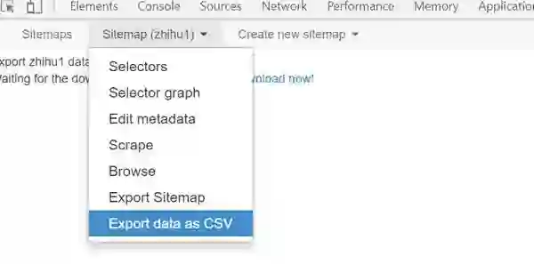 (4)选择sitemap下的export data as csv选项就可以将采集的结果以表格的形式导出。