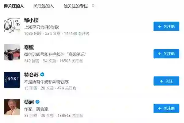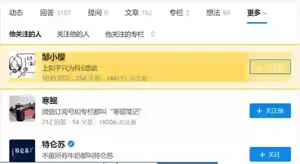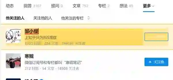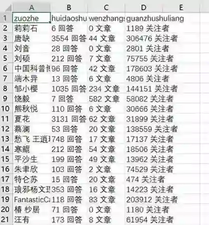 1、打开目标网站,这里以采集知乎第一大v张佳玮的关注对象为例,需要爬取的是关注对象的知乎名字、回答数量、发表文章数量、关注着数量。