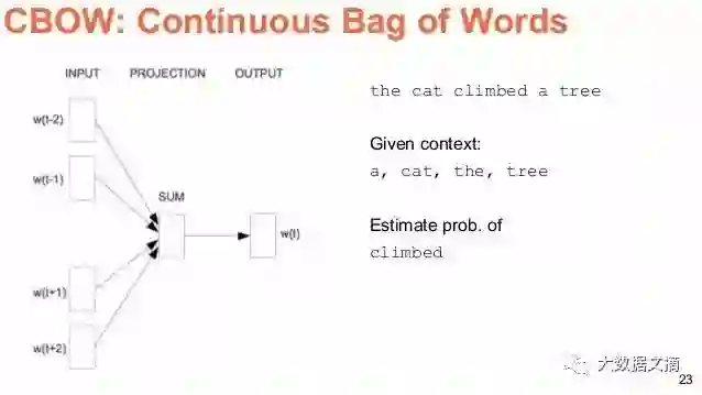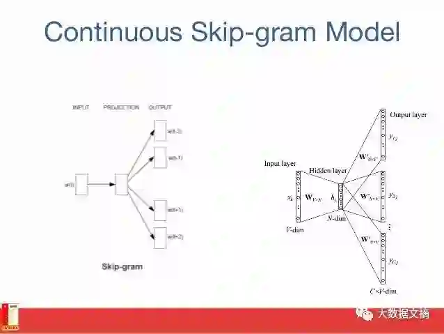 的窗口(一个包含K个连续项的窗口)。那么你应该跳过其中一个词,试着学习一个除了跳过的这个词以外,还可以预测跳过的词的神经网络。因此,如果两个词在大语料库中反复共享相似的上下文,那么这些词的嵌入向量将具有相似的向量。