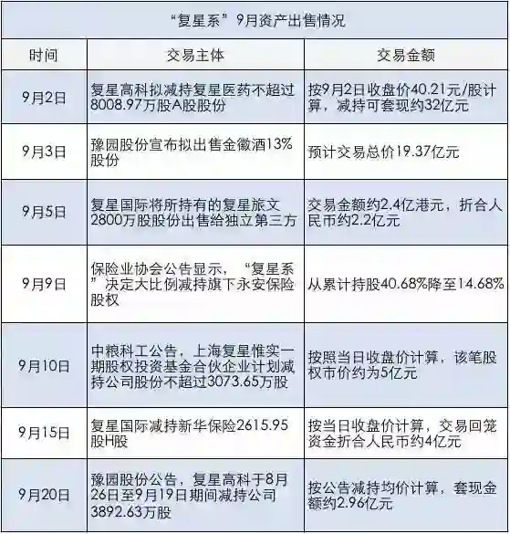 而在今年9月之前,“复星系”频繁抛售的动作已经持续近半年。