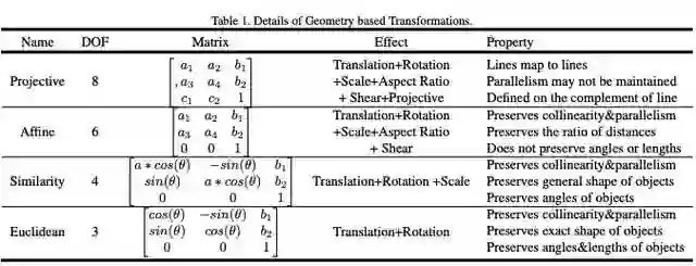 从左到右依次是原图,projective变换,affine变换,similarity变换和euclidean变换。
