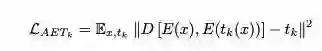 为实现这个目标,可以针对每种变换tk使用MSE损失函数来来计算AET损失从而达到增强编码器E的目的。