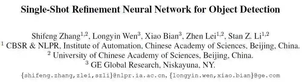 论文:Single-Shot Refinement Neural Network for Object Detection