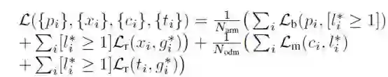 这里p,x,c,t分别表示第i个锚框的物体性概率、精化后的坐标、预测的类别标签和最终预测的坐标。