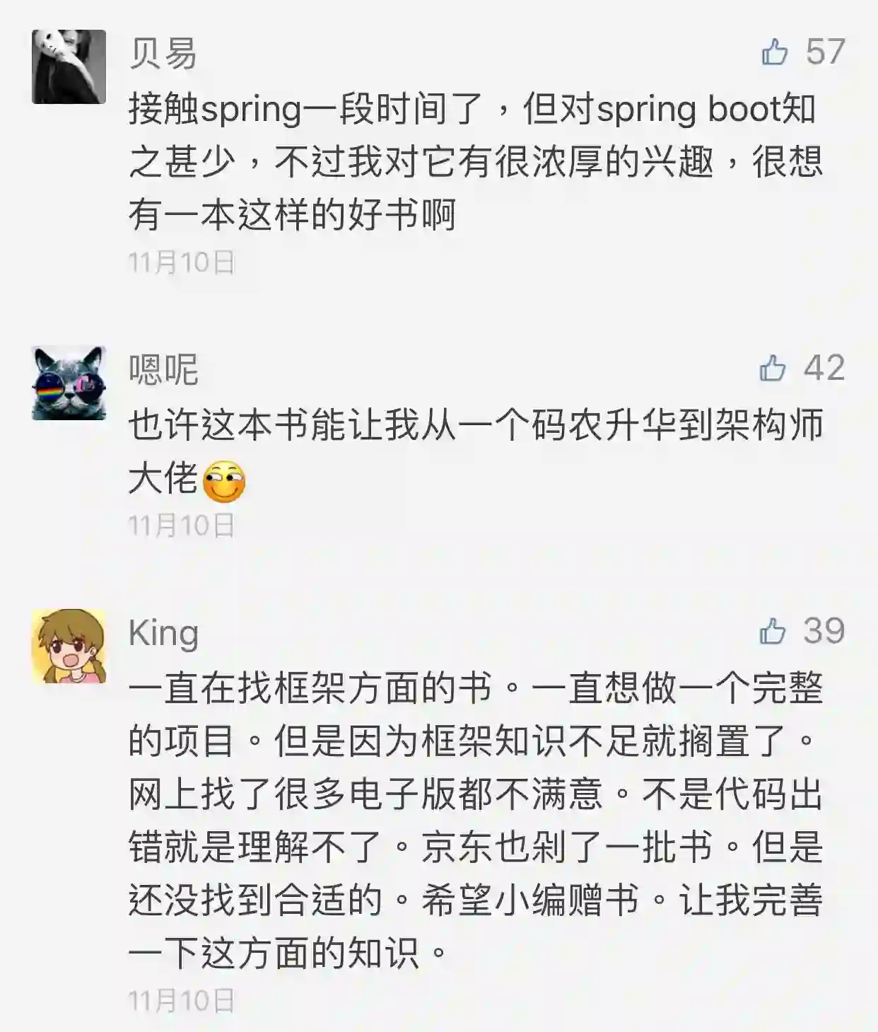 如果你对本书感兴趣,可在本文下方留言,说出自己的申请理由,小编会放出有价值的评论,且根据用户评论点赞数+申请理由+上一期是否中奖综合之后,挑选出3 名参与荐书的小伙伴。