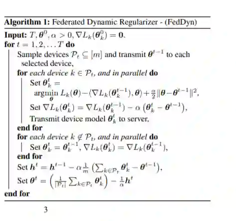 我们提出了一种新的用于分布式训练神经网络模型的联邦学习方法,其中服务器在每一轮随机选择的设备子集的协调合作。我们主要从通信的角度来看待联邦学习问题,并允许更多的设备级计算来节省传输成本。20指出了一个基本的困境,即局部设备级经验损失的最小值与全局经验损失的最小值不一致。与最近尝试不精确最小化或利用设备来并行梯度计算的工作不同,我们在每一轮为每个设备提出了一个动态正则化,这样在极限情况下全局解决方案和设备解决方案是对齐的。我们通过对真实数据和合成数据的实证结果以及分析结果证明,我们的方案能够在凸和非凸设置下实现高效的训练,同时完全不知道设备的异构性,对大量设备、部分参与和不平衡数据具有鲁棒性。