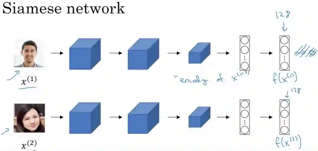 基本上,回答这个问题,你应该先描述一下 One Shot learning 来进行人脸识别的方法一般性方法。它可以简单地理解为将每个人脸转换成一个向量,而新的人脸识别是寻找与输入人脸最接近(最相似)的向量。通常,人们会使用 triplet loss 损失函数的深度学习模型来实现这一点。