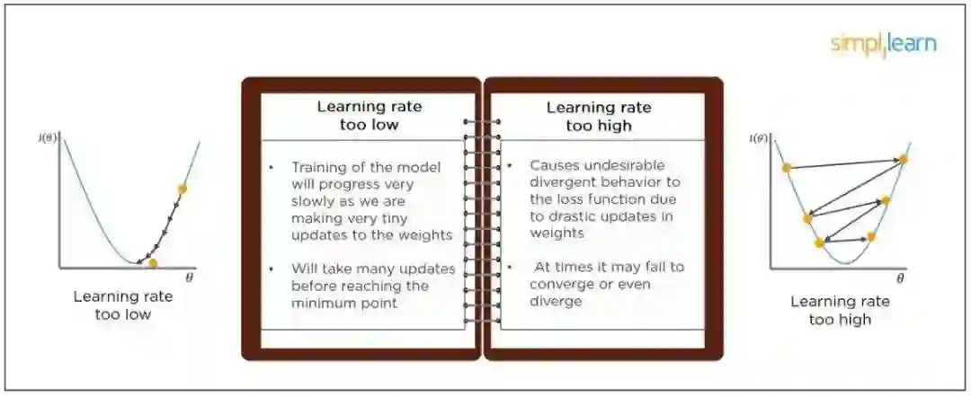 当模型的学习率被设置得太低时,模型训练将会进行得非常慢,因为它对权重进行非常小的更新。在到达局部最优点之前需要多次更新。
