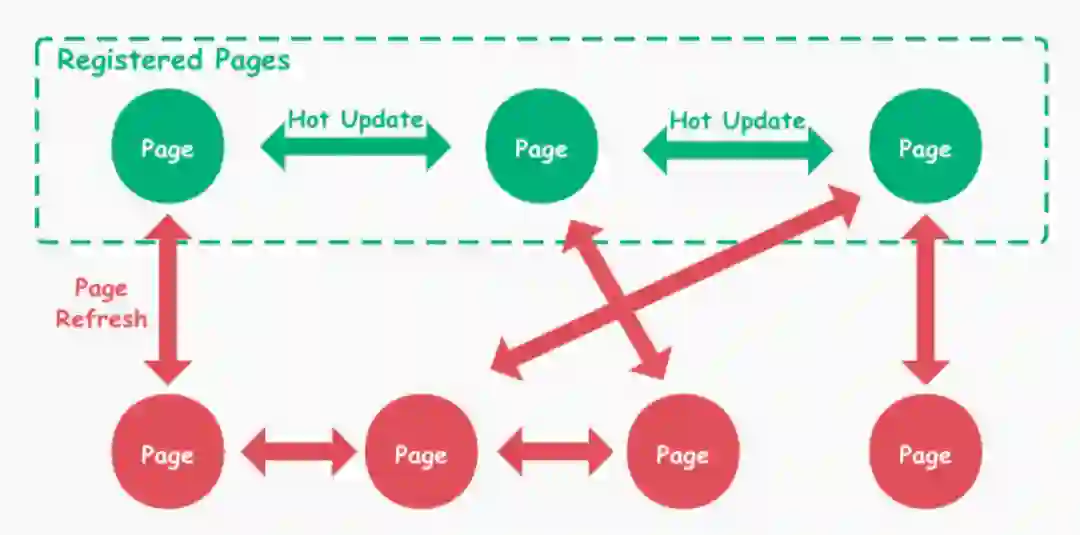 同为微前端的页面路由相互之间切换可实现局部刷新形态,而跳转至非微前端注册表中的页面则会直接页面跳转。随着微前端页面覆盖率提高,局部刷新的覆盖率也会逐渐提高。