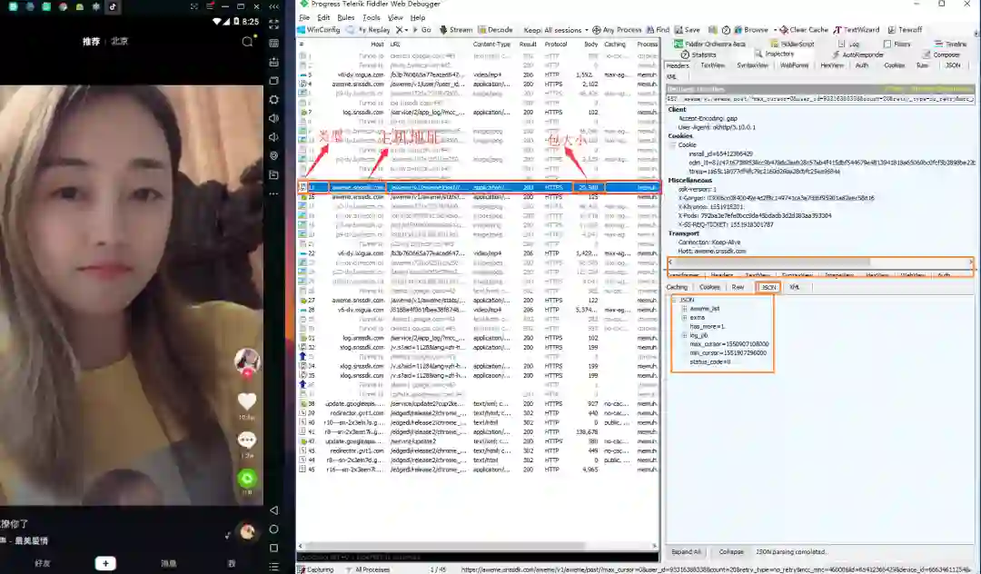 这时候需要借助模拟器的模拟鼠标翻页,让模拟器一直翻页,这样就不断会出现json包了。